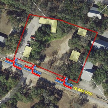 The site currently has 3 TxDot curb cuts. It is connected to the City wastewater main running along Ranch Road 12. Plus there are 3 existing water meters on the property.